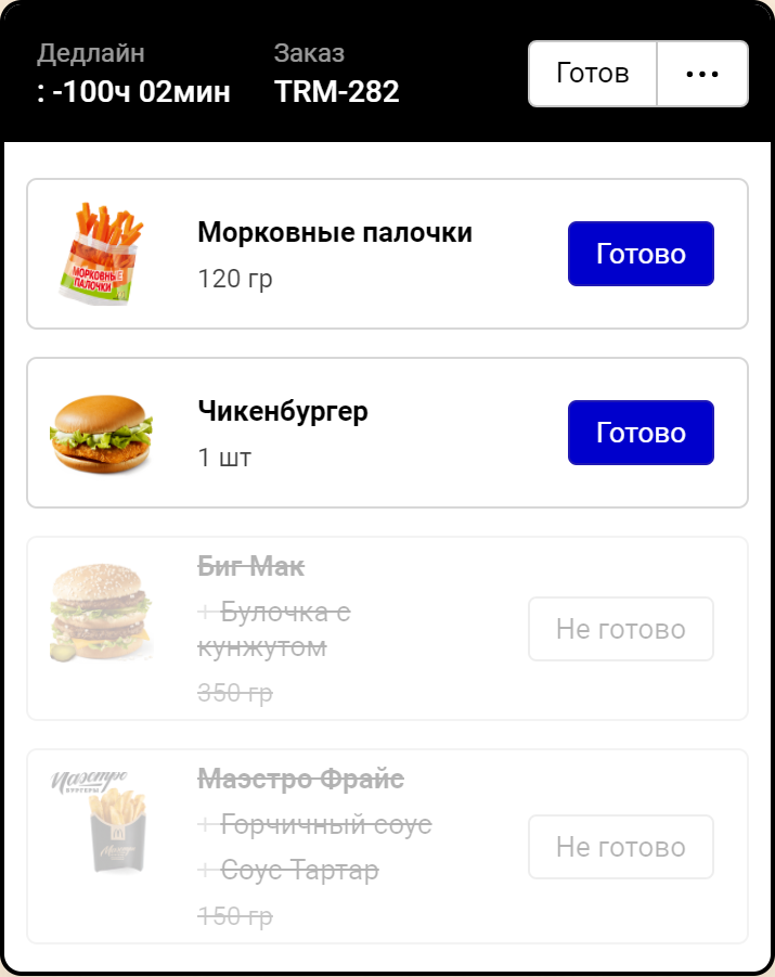 ПО для зоны выдачи заказов с наглядной индикацией статусов готовности и возможностью оплатить предзаказы и онлайн-заказы.